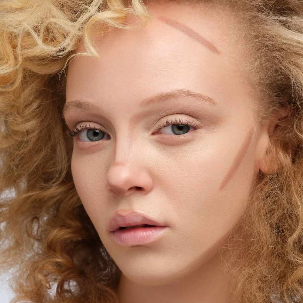 Using the flat edge of the stick, trace along the cheekbones, jawline, or perimeter of the face where you want soft definition.