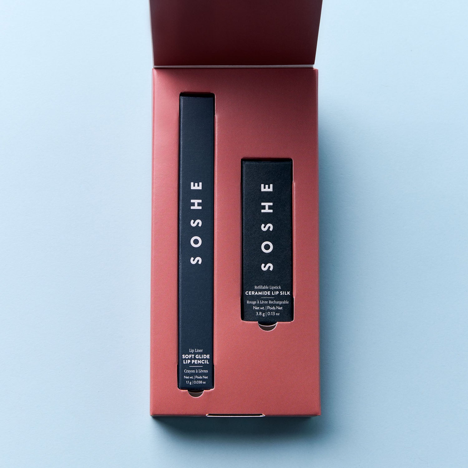 For extra color and long lasting wear, pair with the SOSHE Soft Glide Lip Liner.